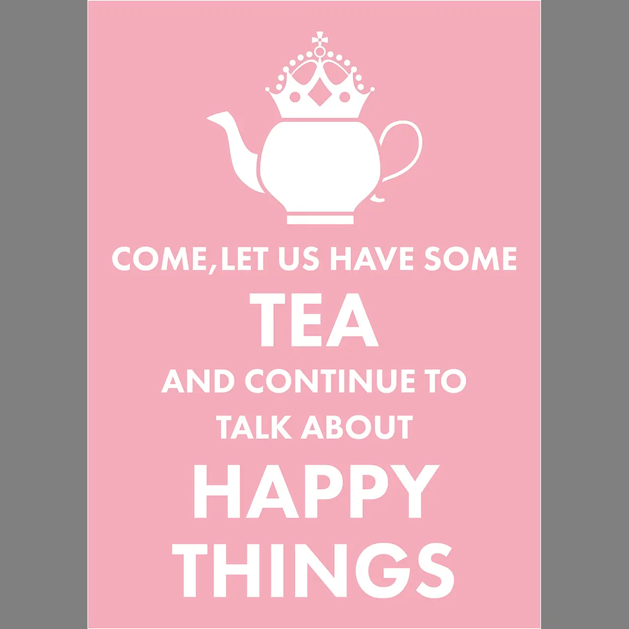 Ansichtkaart Come Let us have some Tea and continue to Talk about Happy Things (Chaim Potok), per 5 stuks verpakt in een pergamijn zakje.
