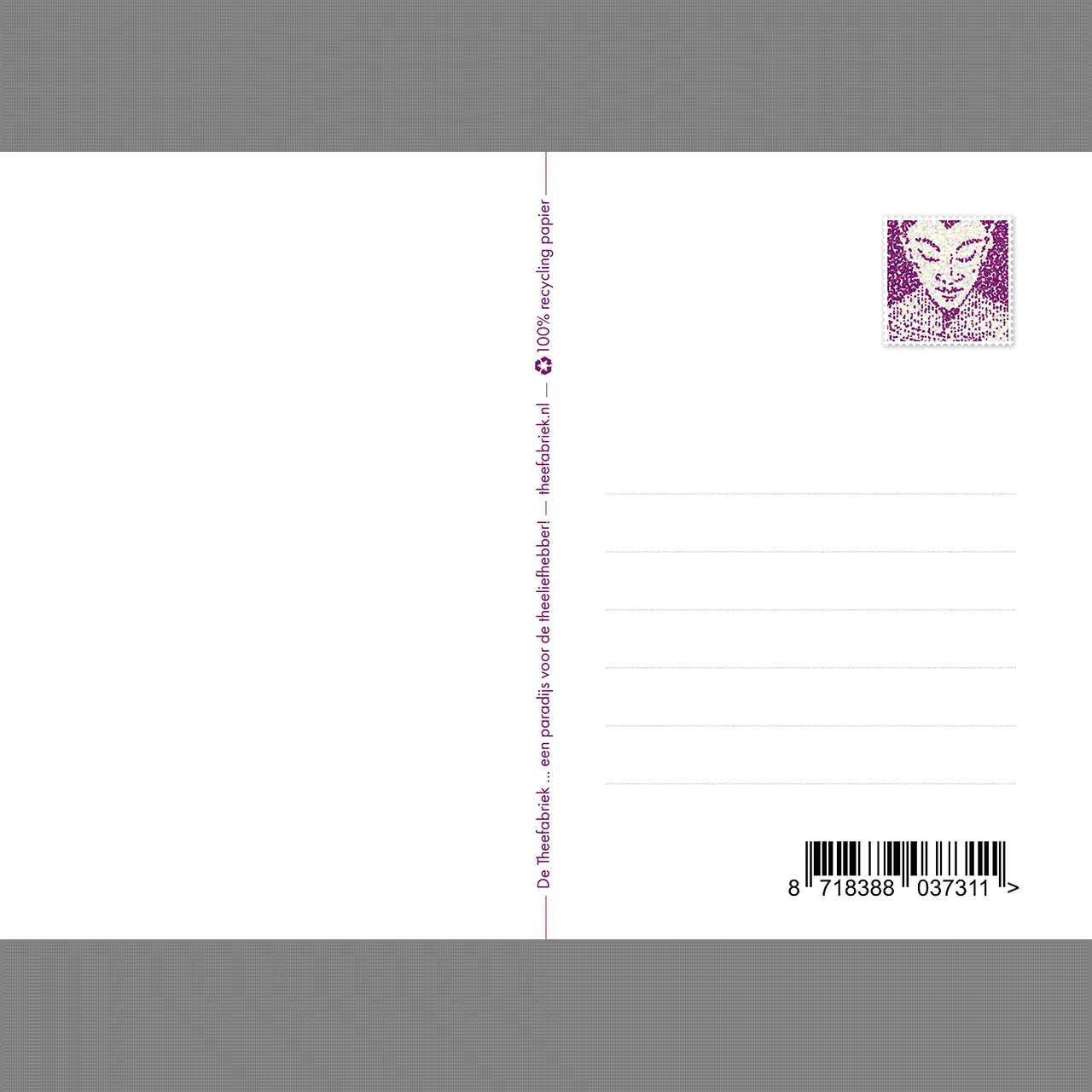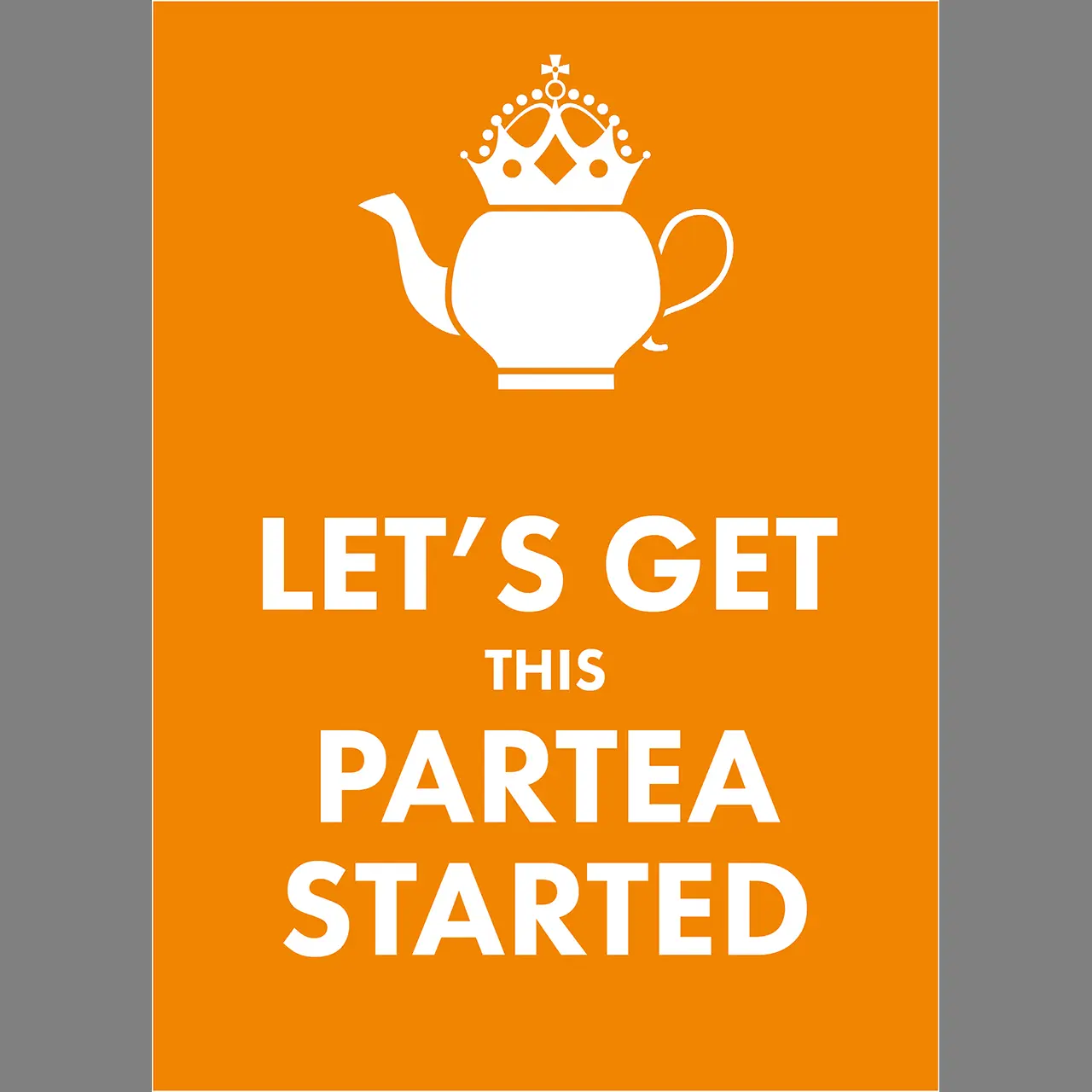 Ansichtkaart Let’s get this ParTea started, per 5 stuks verpakt in een pergamijn zakje.
