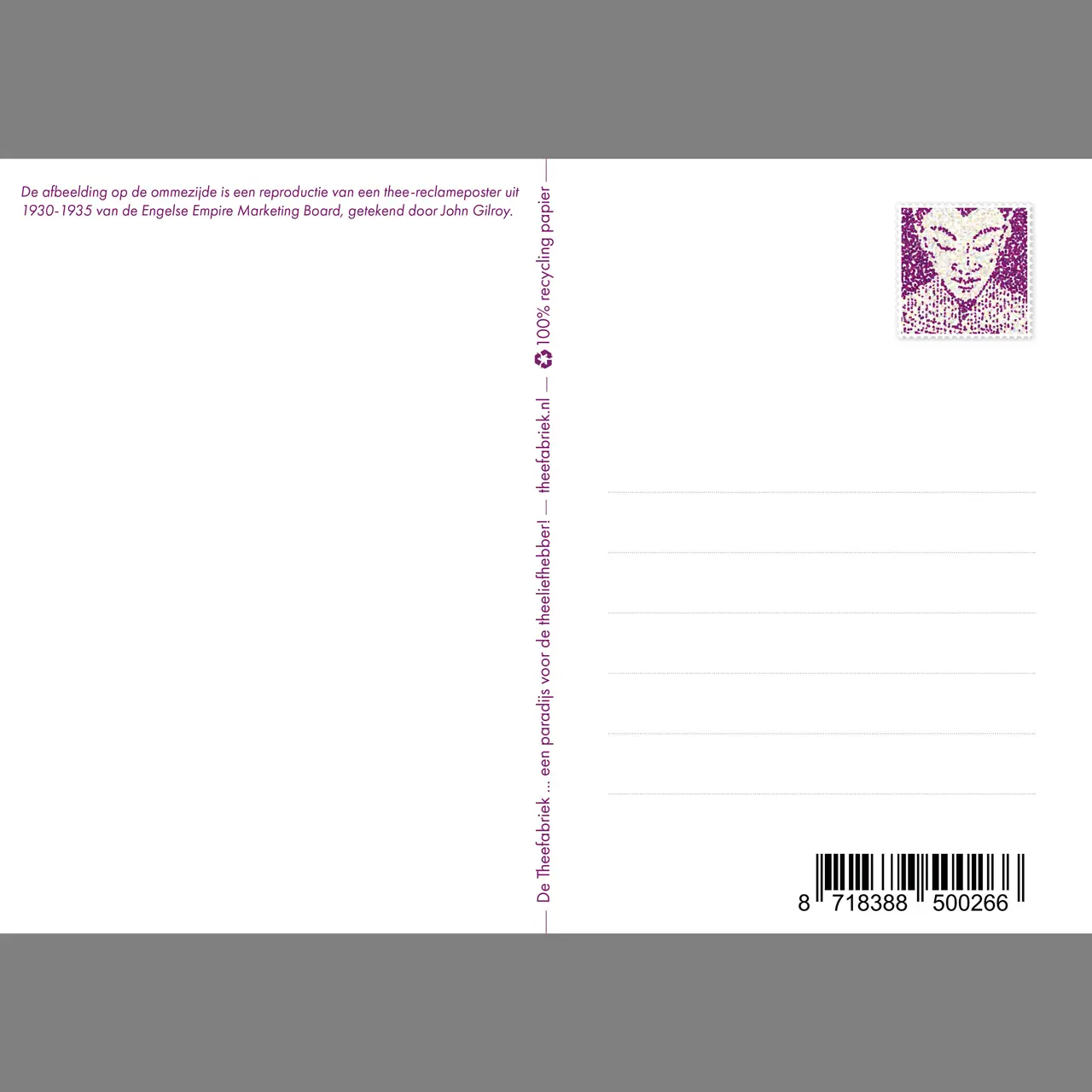 De prachtige, sfeervolle retro/vintage afbeelding is een reproductie van een thee-reclameposter uit 1930-1935 van de Engelse Empire Marketing Board, getekend door John Gilroy.