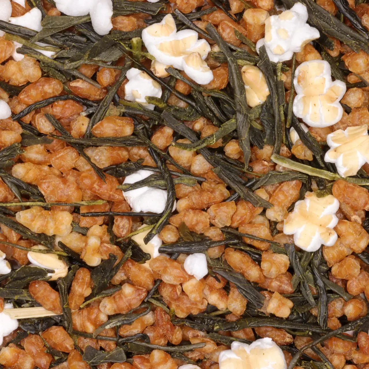 Grote strookvormige lichtgroene Bancha-theebladeren verrassend gecombineerd met gepofte en geroosterde rijst. Gen mai Cha heeft een opvallende rijstgeur en is mild van smaak.