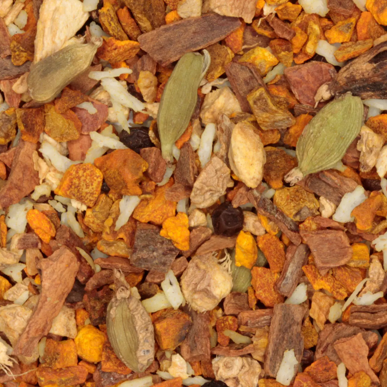 Ingrediënten: kurkuma*, kaneel*, gember*, kokos*, kardemom*, zwarte peper*