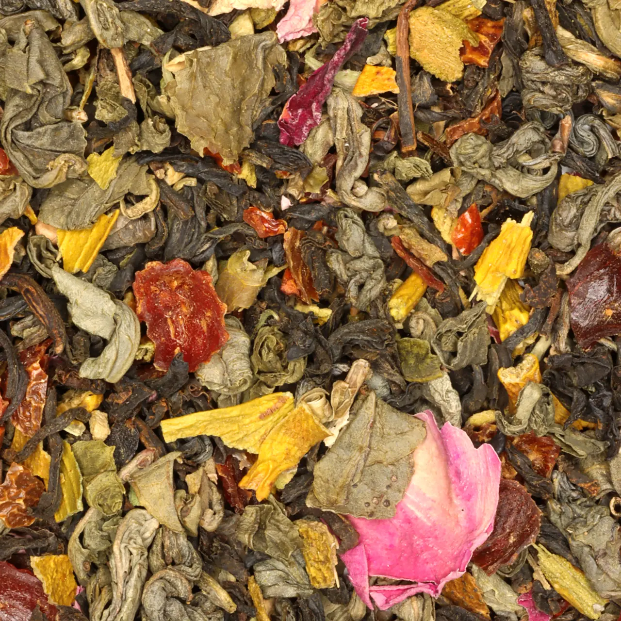 Ingrediënten: groene en zwarte thee*, roos*, rozenbottel*, maretak*