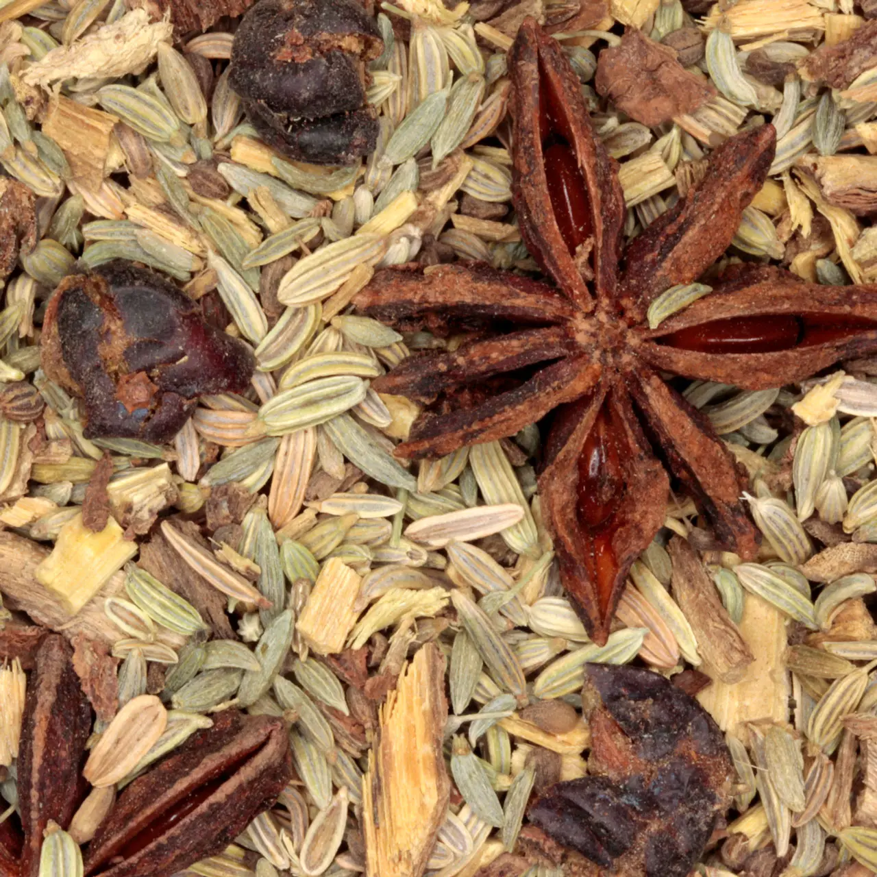 Ingrediënten: venkel*, zoethout*, steranijs*, anijszaad*, jeneverbessen*